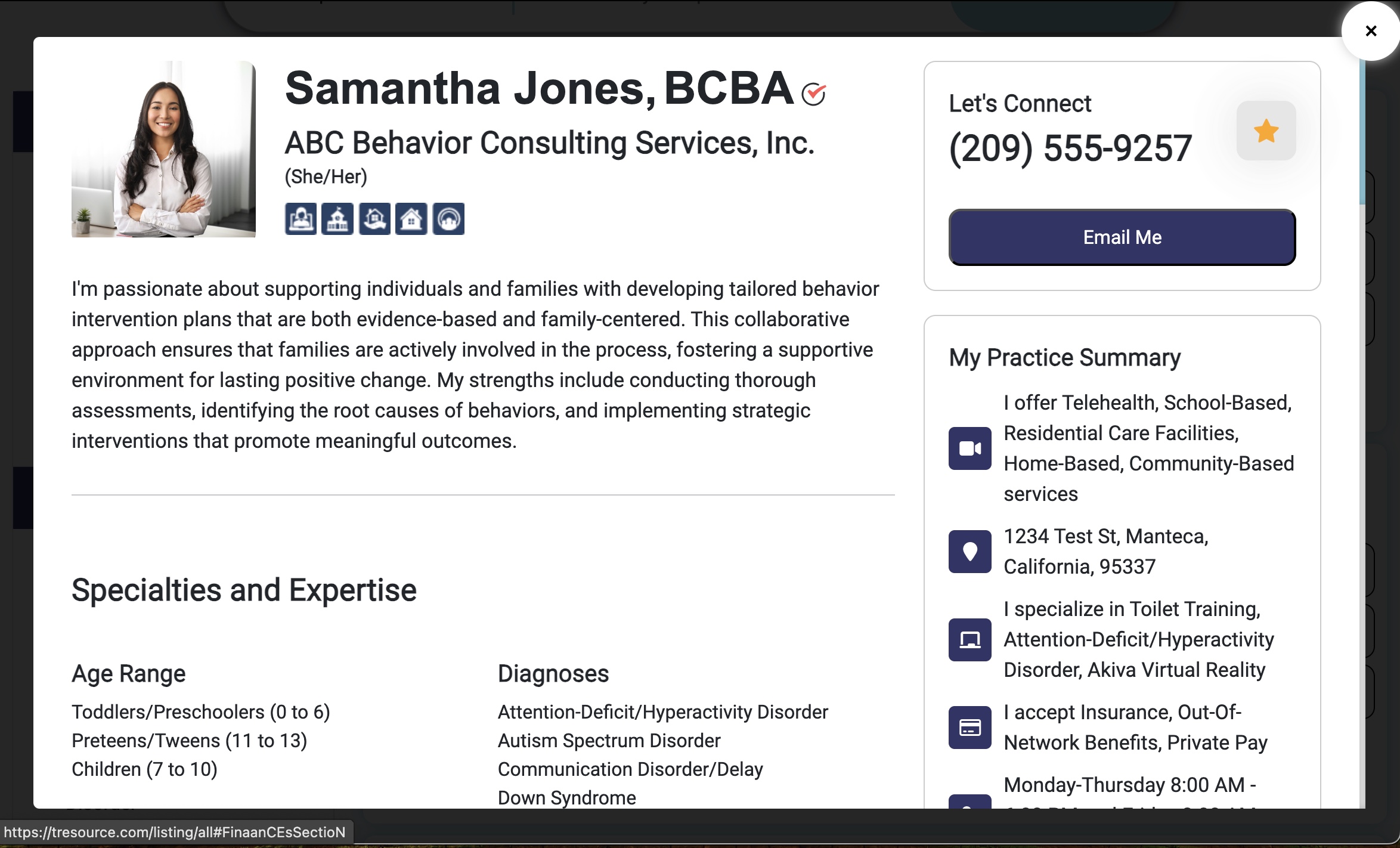 TreSource creates a rare opportunity to advertise essential features of your specialized services. Once you publish your profile with us, your practice will appear on TreSource making it easier for new clients to find you.