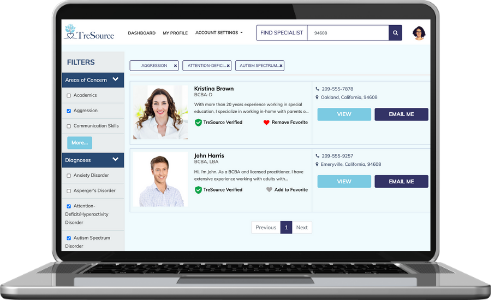 • Search: Search our directory to find a TreSource Verified Behavioral Specialist who can meet your needs.